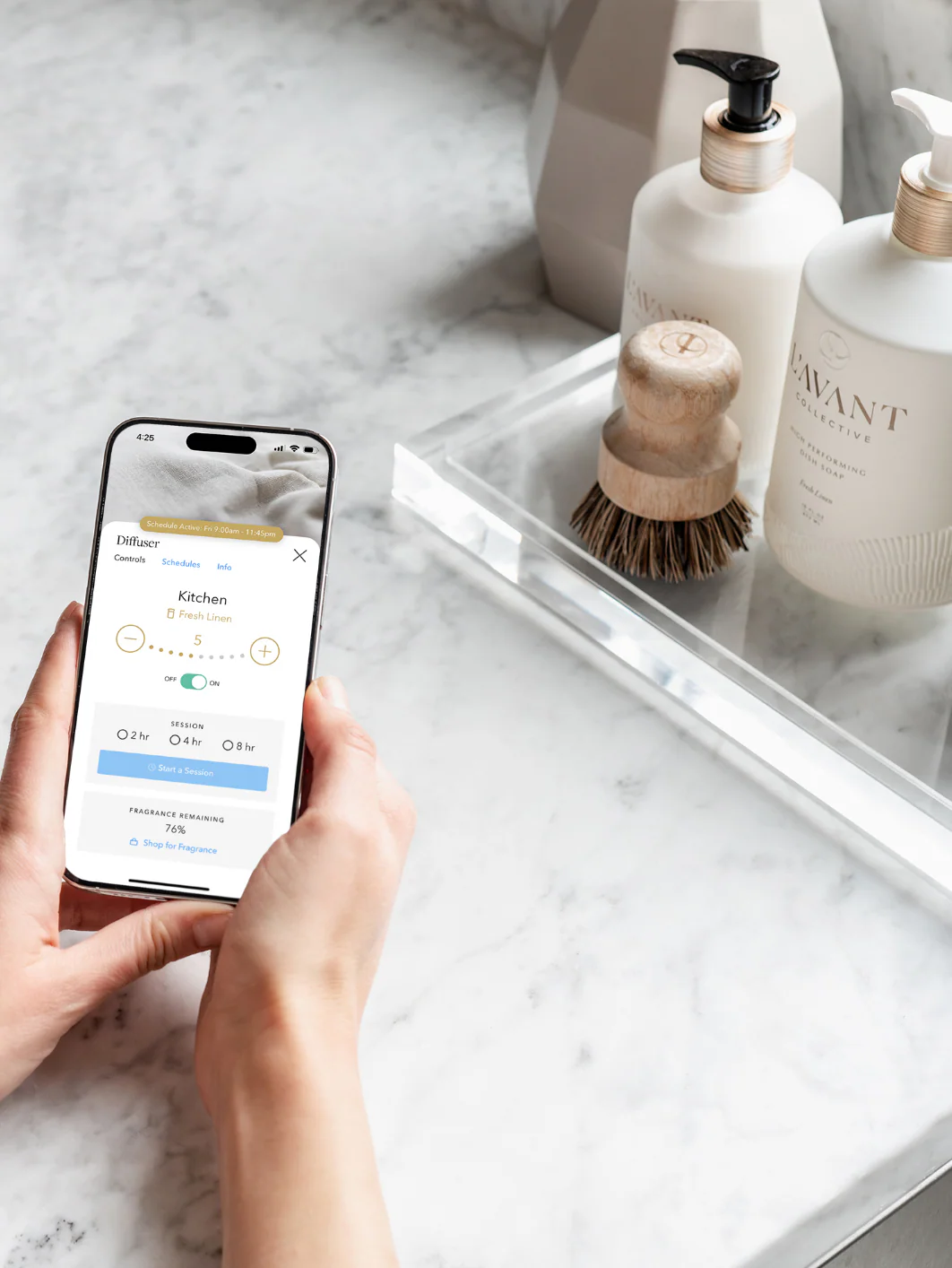 With Aera's patented technology and the clean scent of the Fresh Linen or Blushed Bergamot Fragrance Capsule, you can fill your home with a lasting and consistent scent that is sure to lift your spirits. Add a little joy to any space in your home!